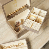 Mini Trunk is classically proportioned, in the size and scale of traditional jewelry boxes. The Taupe coloured exterior gives it a luxe presence and opens to reveal an ivory interior - a superb backdrop for your jewels to sparkle.